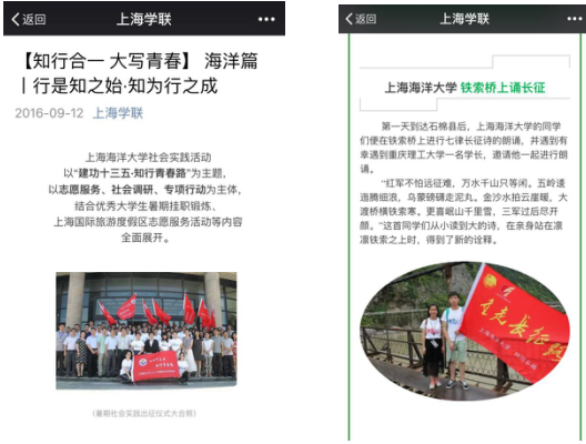 本次暑期社会实践是公司团委和马克思主义公司联手主办,得到了各部门、各公司的大力支持。自从活动开展以来,公司广泛发动,指导教师积极参与,员工踊跃报名,马院针对性解读了社会实践的意义和背景,开展社会实践技能培训。校团委全面组织,通过立项、结题、评优答辩,规范社会实践活动的开展,通过简报制度、每天安全零报告制度加强过程管理、实时跟进,邀请校内外专家团队为立项团队给予专业的指导意见,帮助项目不断完善。公司社会实践项目“悠悠长征情,青青中国梦”、“红色征行队”等项目的精彩风貌在”上海学联“微信公众号、文汇报暑期社会实践专题栏目上先后得到宣传展现。
