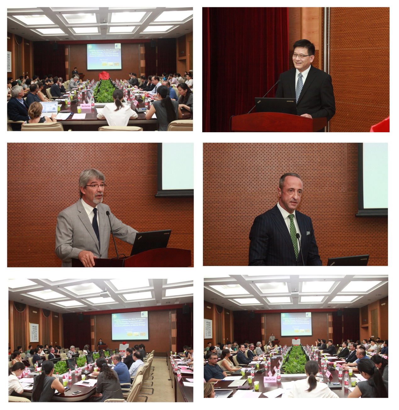 程裕东、António Branco、João Pedro Fins Do Lago为中葡海洋生物研讨会开幕式暨中葡海洋生物科学国际联合实验室成立致辞,联合实验室主任陈良标教授、Adelino Canario教授为中葡海洋生物科学国际联合实验室成立揭牌,并分别代表中方实验室主任和葡方实验室主任发言,介绍中葡双方公司和实验室的基本情况以及前期合作的成果,双方教授以及成果合作申请国家自然基金国际(地区)交流项目和国家重点研发计划政府间国际科技创新合作重点专项,以及互派员工交流等,对双方领导的支持和为实验室成立努力工作的老师和员工表示感谢,在双方的共同努力下,中葡海洋生物科学国际联合实验室一定会产出良好的科研成果。