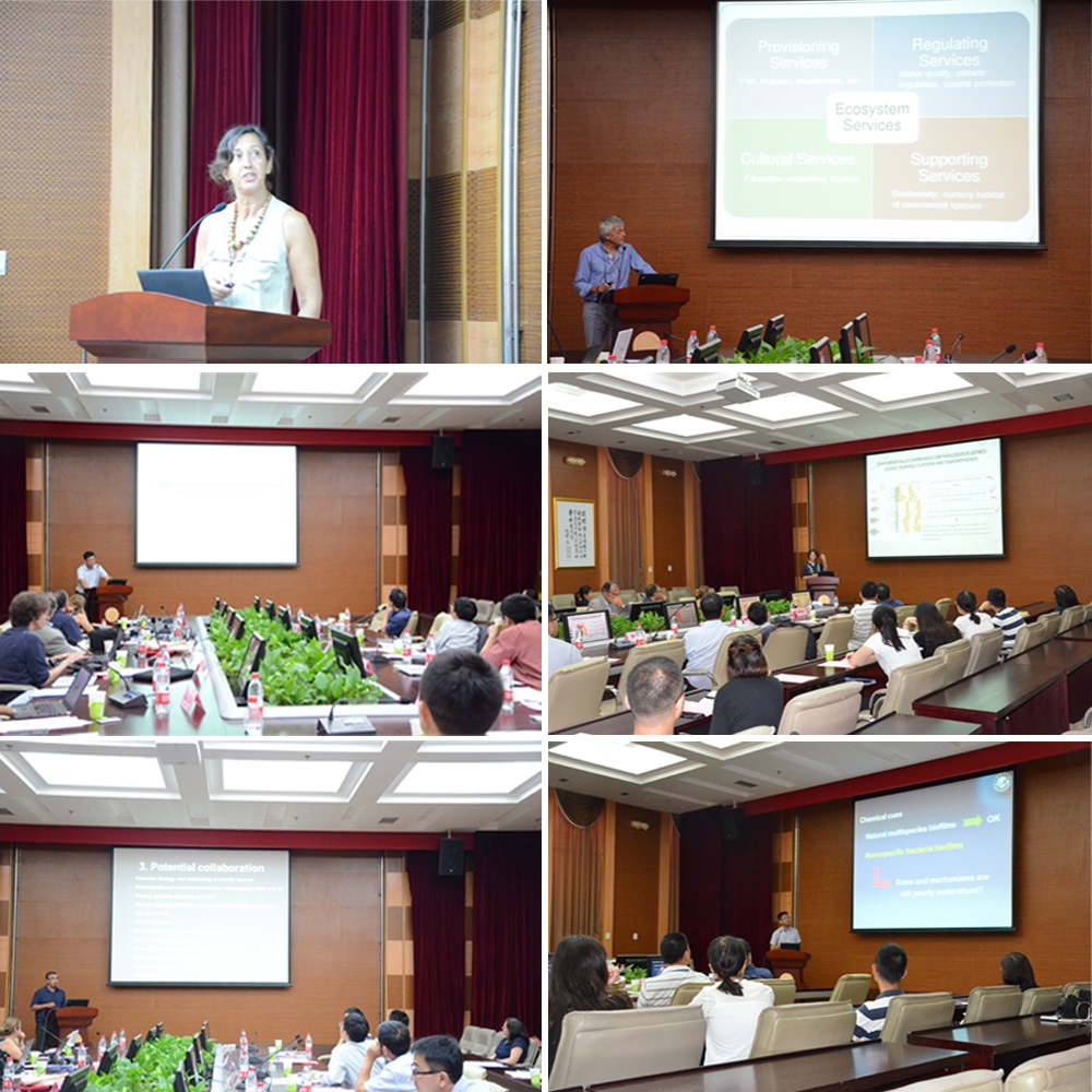 在中葡海洋生物研讨会上,葡萄牙阿尔加夫大学Deborah Power教授、Jorge Gonçalves教授、Maria Clara Costa教授、Rui Santos教授、Alexandra Teodósio教授及公司杨金龙教授、鲍宝龙教授、何培民教授、冷向军教授、李云凯副教授就海洋生物方面基础研究、海洋水产种质资源保护、海洋生态环境保护及水产养殖营养学研究方面等作了学术报告,与会人员围绕报告进行了热烈的学术讨论。