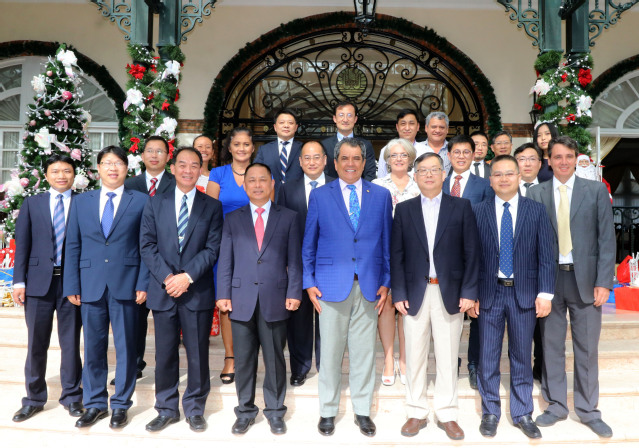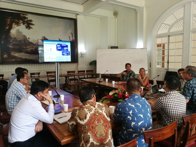 12月19日,访问团与天瑞集团、启东访问团全体成员出席了法波主席在主席府举行的官方会谈,法波费里奇主席对yl6809永利给予法属波利尼西亚在人才培养方面的支持表示感谢。钟俊生向费里奇主席汇报了与法波海洋资源与开发局、法波海洋职业培训中心的会谈和豪岛现场考察的成果,表示将继续做好接收第二批法波员工的各项准备和培训工作,并希望2020年实质启动与法波海洋资源与开发局合作的“南太水产养殖职业教育培训项目”。同时参加会谈的中国驻帕皮提领事馆馆长领事沈智良先生、天瑞投资管理有限公司董事长王成先生和启东访问团的石光辉高级经济师也各自汇报了相关成果。